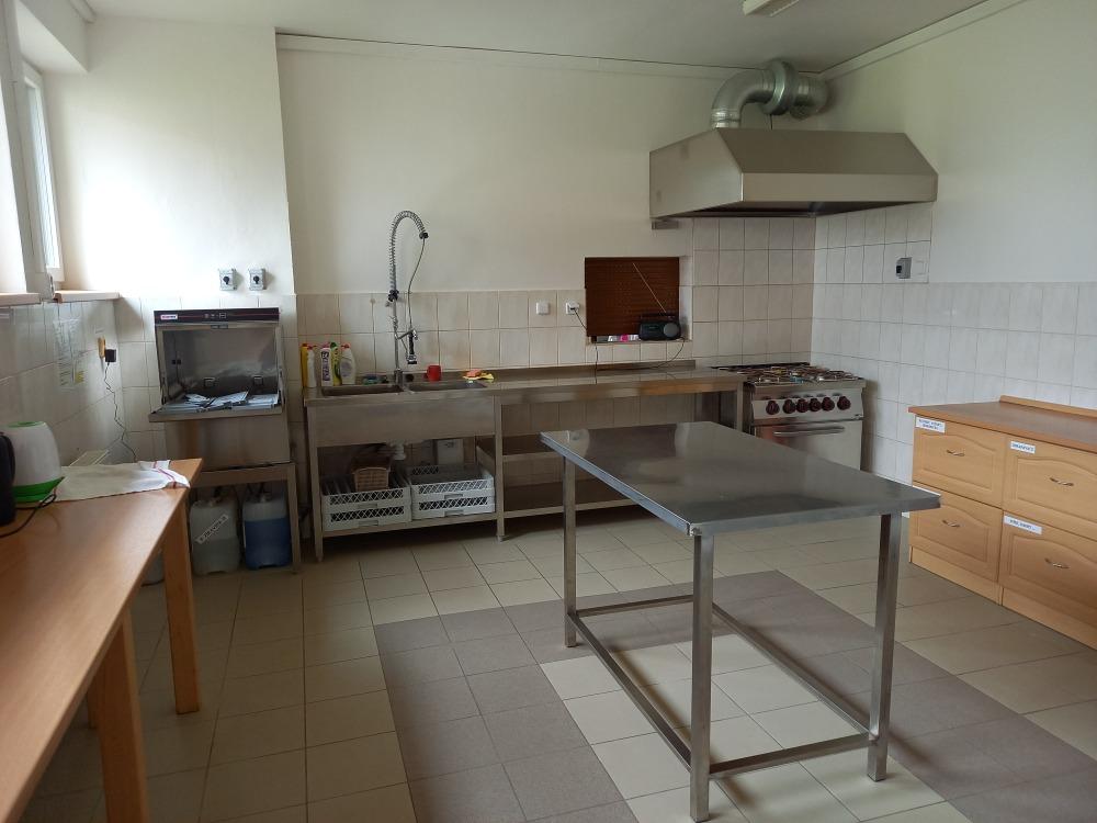 V kuchyni vznikly větší prostory, byla pořízena průmyslová myčka nádobí, dva velké nerezové dřezy, trouba, sporák i digestoř. Jsou zde k dispozici 3 lednice. Kuchyň je vybavena nádobím pro cca 120 hostů.