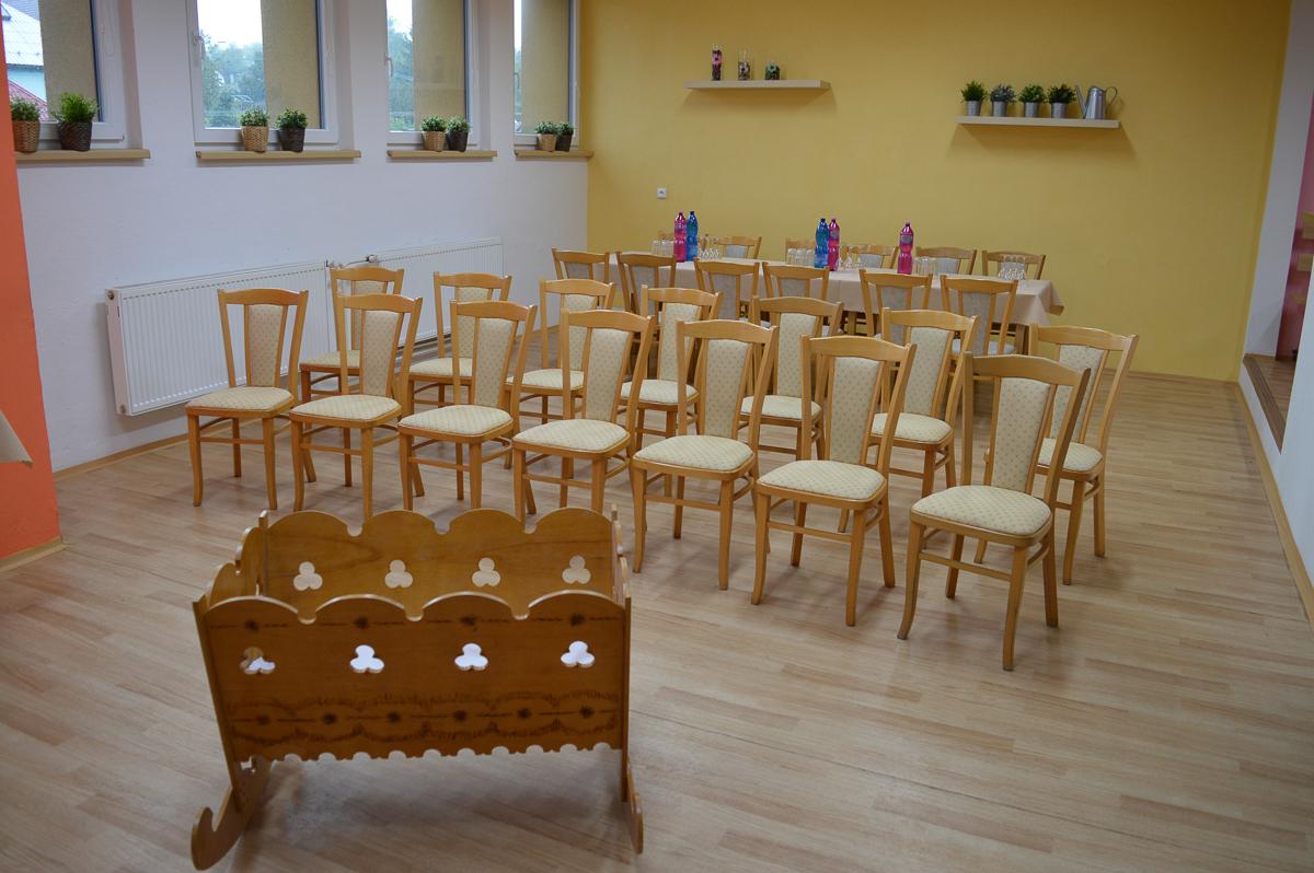 Do sálu KD byly pořízeny nové skládací stoly (30ks), a polstrované židle (120ks).